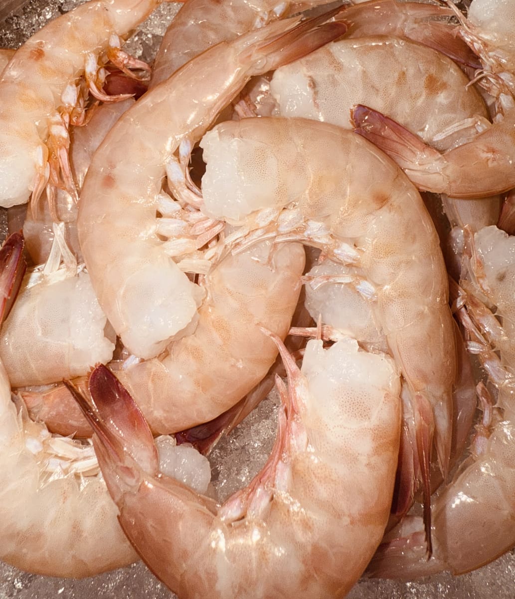 The perfect boiling shrimp. These easy-peeling, firm shrimp are in the middle of the flavor spectrum and have the prettiest cooked color.